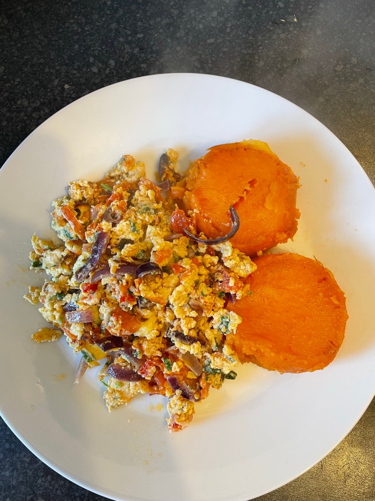 If you’re craving yam and egg for breakfast and don’t have any yams at home, sweet potatoes or maris piper is a good alternative from your pantry. For the best start to the day, especially for busy days, I like having a carbohydrate to compliment my eggs.
