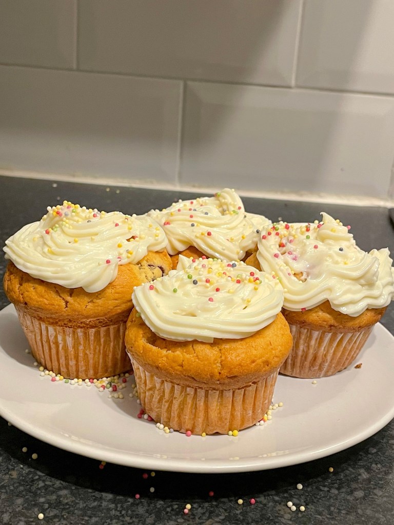 💡For best results, let your double cream come to room temperature before mixing into recipe; allow your batter to rest between 1-2 hours at room temperature; add in a portion of greek yoghurt; fill your muffin cases to the very top.