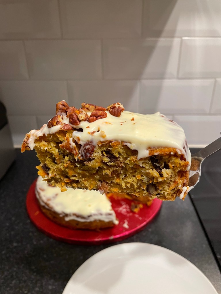 First time eating carrot cake was in 2018 when I decided to go vegan and was consciously monitoring my daily calorie intake. I was in the office and fancied having something sweep after my Nando’s lunch. The only cake left was this carrot cake lone ranger and I went for it. I’ve never gone back since.